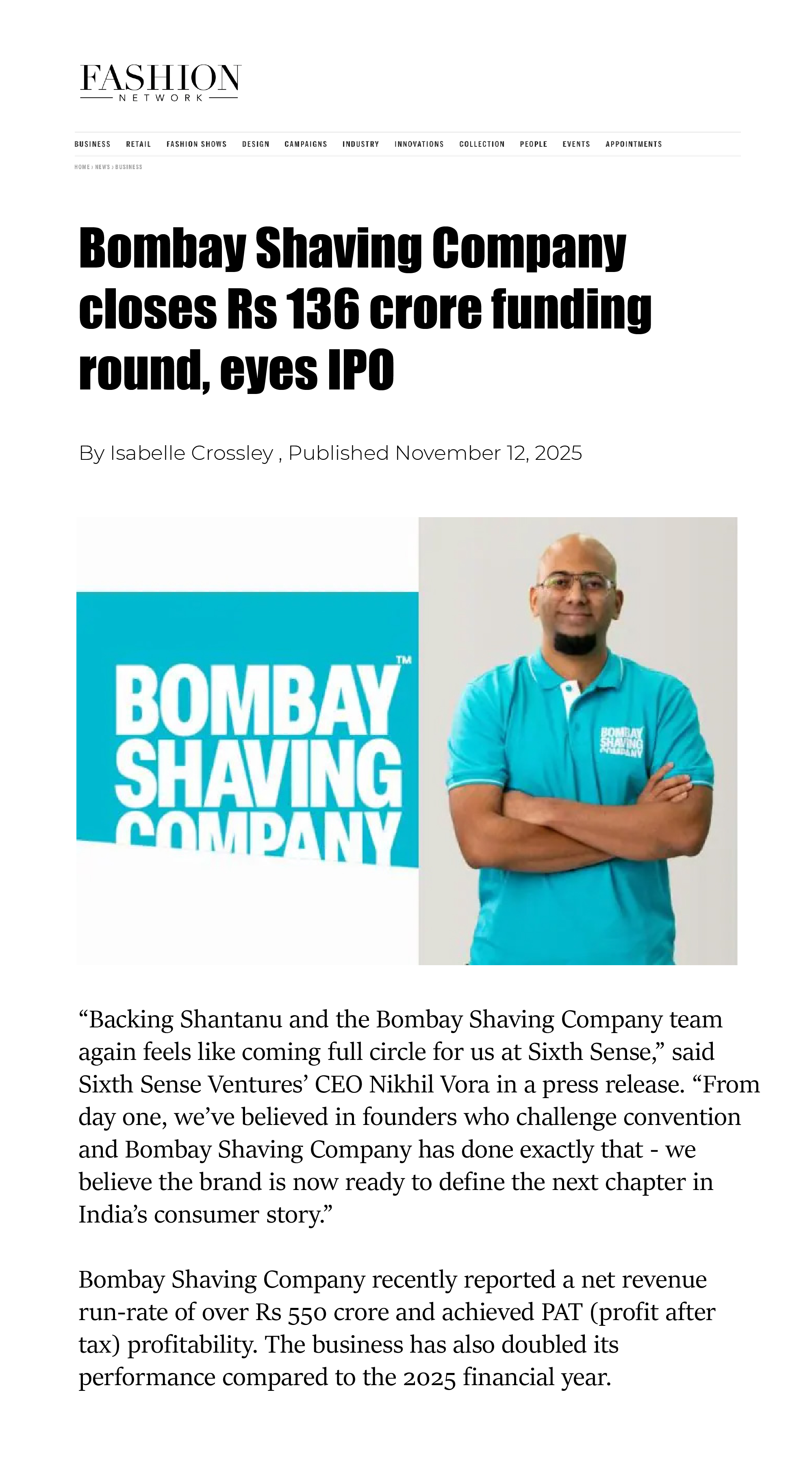 Bombay Shaving Company is India's premium grooming brand, making high-quality men’s skincare and shaving essentials accessible. With a wide range from trimmers and razors to creams and after-shaves, and a strong online plus retail presence.